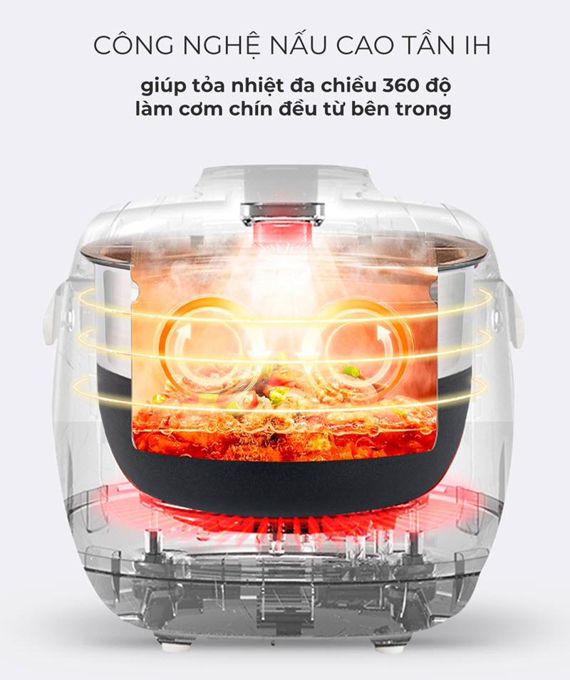 - Công nghệ nấu cao tần tỏa nhiệt đa chiều 360 ° giúp cơm chín đều và ngon hơn.